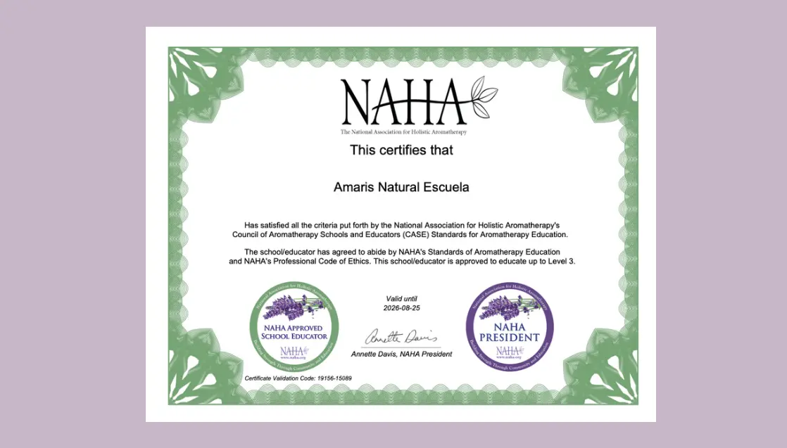 - NAHA (EE.UU.) – La escuela Amaris Natural se certifica en Nivel 3, el más alto nivel de formación profesional en Aromaterapia Clínica.